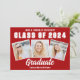 This trendy red and white custom senior senior portrait photo collage graduate announcement card features white varsity letters for the Class of 2025 under your college or high school name. Customise with your favourite 3 graduation photographs and personalise the back with commencement details.