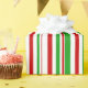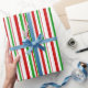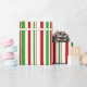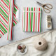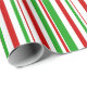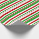 This wrapping paper design features a Christmas themed striped pattern having colours like green, white, and red. It might be fun to use wrapping paper like this when wrapping gifts or presents being given to celebrate a birthday, a wedding, an anniversary, or some other event.