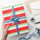 Red, White, Green Coloured Christmas Themed Lines Wrapping Paper