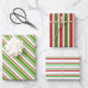 These fun designs feature Christmas and holidays themed green, white, and red coloured stripes patterns. Wrapping paper sheets like these might be used when wrapping presents being given when celebrating Christmas.