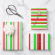 Red, White, Green Coloured Christmas Themed Lines Wrapping Paper Sheet