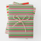 Red, White, Green Coloured Christmas-Themed Lines Wrapping Paper Sheet