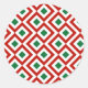 This bold red, green, and white geometric pattern is an original ornamental design perfect for Christmas. Red meanders angle around white diamonds containing small green diamonds. White zigzags provide separation between the winding crimson paths.