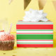This Christmas and holidays style design features stripes coloured red, white, and green. Wrapping paper like this might be fun to use when wrapping presents being given to celebrate a birthday, a wedding, an anniversary, or some other event.