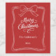 A red background and white text.  Decorated with a large hand-drawn white bow and frame. Merry Christmas is written with an elegant hand-lettered style script.  Personalise and add your family name and year.