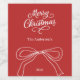 A red background and white text. Decorated with a large hand-drawn white bow. Merry Christmas is written with an elegant hand-lettered style script. Personalise and add your family name and year.