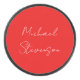 Red White Handwritten Minimalist Your Name Hockey Puck