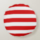 Red White Horizontal Preppy Stripe Name Monogram Round Cushion