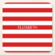 Red White Horizontal Preppy Stripe Name Monogram Square Paper Coaster
