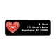 Red and white lined heart address labels. Background colour can be customised.