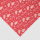 This Holiday tissue paper has a pattern of red and white mittens with matching snowflakes on a red background. The script "Merry Christmas" is in white between the mitten images. A pretty retro style pattern that is festive for the Season.