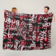 Red & White Name Cool Pattern all over Black Fleece Blanket