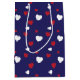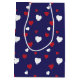 Red, White, Navy Blue Hearts Pattern Medium Gift Bag