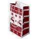 Classic small Christmas gift bag in striking red and white featuring a traditional Nordic or Fair Isle sweater pattern with reindeer, large snowflakes, and checkered stripes. Perfect for wrapping holiday gifts and party favors. Ideal for winter themes, cozy gifts, and anyone who loves traditional Scandinavian Christmas decor.