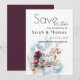 RED WHITE & ORANGE FLORAL ELEGANT SAVE OUR DATE ANNOUNCEMENT
