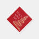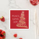The napkin features a gold abstract Christmas tree with Peace Love Joy in a traditional white font.
