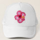red white pink hibiscus aloha flower trucker hat