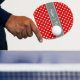 Red White Polka Dots Charcoal Ribbon Monogram Ping Pong Paddle