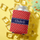Red White Polka Dots Navy Blue Ribbon Monogram Can Cooler