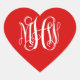 Red White Preppy Vine Script Monogram DIY BG Heart Sticker