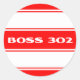 Red White Race Stripes Boss 302 Motor Sticker. Fun round stickers for muscle car owners and drivers. Buy a sticker today and stick them anywhere!