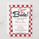 A cute red and white retro diner bridal shower invitation featuring a checked red and white background to "Shower The Bride".