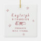 Celebrate a graduation with this charming and customisable ornament! Featuring a classic red-and-white retro hand-drawn theme, this keepsake is adorned with whimsical school-related doodles and handwritten style text. Double-sided design. Add a photo and year to the front; add a name and school to the back. Whether it’s hanging on a tree, displayed on a shelf, or given as a gift, this ornament will always remind them of their academic milestone and the hard work that led to it. © Kimbellished, LLC