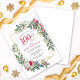 A delicate and festive holiday frame contains red and white roses nestled in holly and eucalyptus leaves. They embellish a thin gold frame. The birthday celebrant's name and birthday year are written in a pretty red. Perfect for a winter holiday birthday party. Easy to customise.