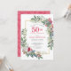 Red White Rose Floral Holly 50th Birthday Party Invitation