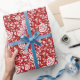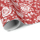 white roses on a red background decorate this Valentines Day gift wrap. Designed for you by Blackberry Boulevard.