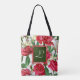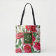 Red White Roses Floral Flowers Monogram Custom Tote Bag