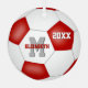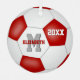 This cool soccer ornament for a girl or boy features a soccer ball graphic upon which you can customise the athlete's name, monogram and commemorative year - the black panels of the soccer ball graphic have been recolored red - by katz_d_zynes