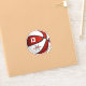 This basketball sticker for boys (or girls) features the image of a stylised basketball with red and white recolored panels and easily customisable player name, jersey number & monogram or varsity letter - by katz_d_zynes