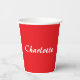 Red White Script Elegant Minimalist Modern Name Paper Cups