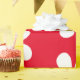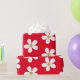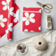 A pretty simple daisy design in white on a red background with an elegant gold centre.