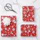 Red White Snowflakes Reindeer Angles Christmas Wrapping Paper Sheet