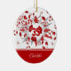 This cool girl's soccer ornament features an "explosion" of varied size soccer balls that have red and white panels, and grey and red star shapes, upon which you can personalise her jersey number - the red star has a tiny pattern of white polka dots - customise the athlete's name on the front & commemorative year on the back on a red colour strip at the bottom edge of the ornament - katz_d_zynes
