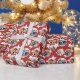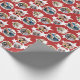 Red White Stars Stripes Round Photos Christmas Wrapping Paper