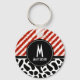 Red White Stripe Black Pattern Monogram Key Ring