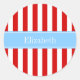 Red White Stripe Sky Blue Name Monogram Classic Round Sticker