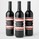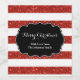 Custom text holiday Merry Christmas wine bottle label with red and white stripes with vintage frame. Please note glitter effect is photographic effect only.