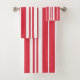 Red White Stripes Coastal Seaside Bath Towel Set designed by Nisha Prabhu. The Red White Stripes Coastal Seaside Bath Towel Set is a perfect addition to your bathroom decor. This set includes three towels, each featuring a beautiful red and white striped pattern. The coastal seaside theme of these towels adds a touch of nautical charm to your bathroom. Whether you have a beach-themed bathroom or simply want to incorporate a coastal vibe, these towels are the perfect choice. The red and white stripes evoke a sense of relaxation and bring a cheerful, summery feel to your space. The Red White Stripes Coastal Seaside Bath Towel Set combines style, functionality, and comfort, making it a must-have for any bathroom. Elevate your bathing experience and enhance your bathroom decor with this beautiful towel set.