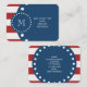 Red White Stripes Pattern, Navy Blue Monogram Business Card