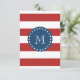 Red White Stripes Pattern, Navy Blue Monogram Invitation