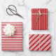 Christmas wrapping papers in red and white with different types of stripes, like peppermint stripes and pinstripes.