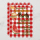 A classic red and white gingham is the background for this lively summer party invitation featuring highlighted text in black and yellow with a burger and watermelon to whet your guests' appetite. Fully customisable party invitation.