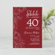 Red White Surprise 40th Birthday Invitation. Minimalist modern feminine design features botanical accents and typography script font. Simple floral invite card perfect for a stylish female surprise bday celebration. Printed Zazzle invitations or instant download digital printable template.