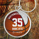 This sporty team colors basketball themed keychain for boys or girls features a simple basketball graphic with two recolored panels--one red and one white--and easily customizable school name & mascot name and player name & jersey number - by katz_d_zynes