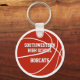 This cool basketball themed keychain features the realistic image of a basketball that has alternating red and white recolored panels on the front and a simple red basketball shape on the back - easily personalise with player name & jersey number on the front and school or club name & mascot name on the back - by katz_d_zynes
