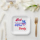 Celebrate your little one's 2nd birthday with our "Red White & Two" Personalised Patriotic Paper Plates. Featuring a fun and bold design with a peace sign hand gesture in American flag colours and customisable with the birthday child's name, these plates are perfect for adding a personal touch to your patriotic-themed party. Made from sturdy, disposable material, they make cleanup a breeze while adding festive flair to your celebration.